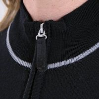 Hybridní svetr se zipem po celé délce z měkké vlněné příze s větruodolnou podšívkou na hrudi a zádech pro lepší izolaci proti větru. Dvoubarevný žebrovaný úplet na bocích v kombinaci s kontrastem ve spodní části límce. Stejnobarevné logo na rukávu.