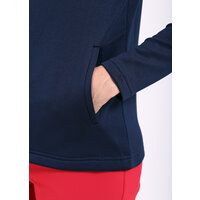 Celopropínací bunda Pro-Therm® z měkkého, hladkého a funkčního fleecu s integrovanou kartáčovanou stranou, která udržuje teplo, aniž by byla příliš objemná. Zapínání na zadní straně na zip s lesklými detaily. Velké boční kapsy s lemováním. Sportovní střih na hrudi a žebrovaný okraj podél límce s barevně sladěným lemováním a lehkými barevně sladěnými lesklými detaily.