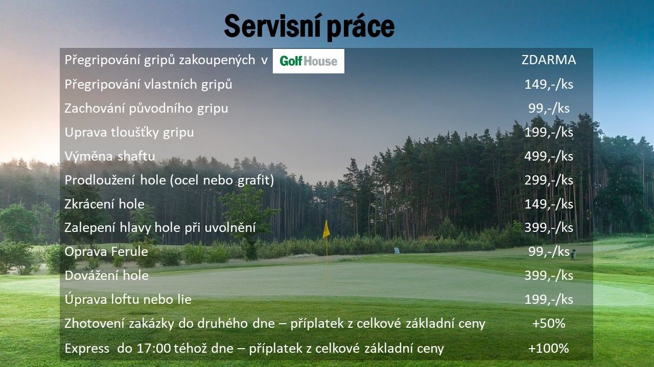 Většinu oprav vašeho vybavení či příslušenství, můžeme snadno a rychle provést v naších dílně. Výměnu gripů nebo spiků můžeme provést i do druhého dne.* K dispozici je široká škála různých gripů, ze kterých si můžete vybrat. Výměna nebo přizpůsobení shaftů také není žádný problém.