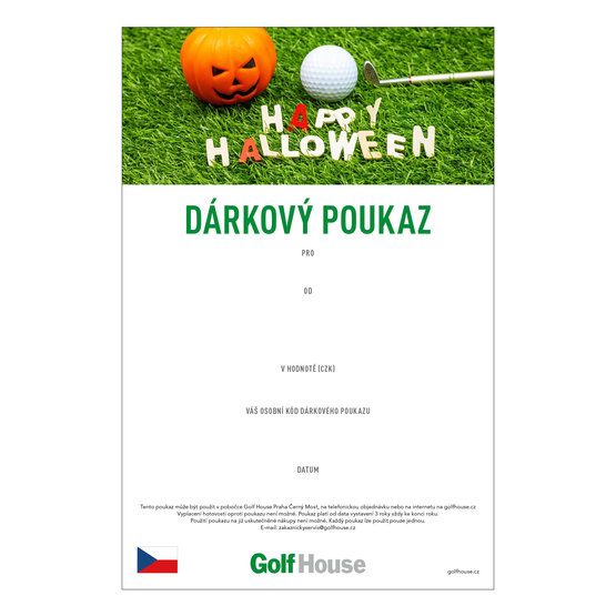 Poukaz který si můžete sami vytisknout v Golf House je to pravé, čím můžete golfistovi snadno udělat radost. Stačí si vybrat správný design, zadat požadovanou hodnotu v rozmezí od 150 do 25 000 Kč a případně připojit krátký text nebo pozdrav. Poukaz lze uplatnit ve všech pobočkách Golf House v České republice včetně telefonických objednávek nebo v objednávce našeho e-shopu na adrese www.golfhouse.cz. Ihned po obdržení platby vám bude voucher zaslán na e-mailovou adresu ve formátu PDF k vytištění. Pokud si zakoupíte více poukazů, obdržíte každý poukaz v samostatném e-mailu... Pokud potřebujete poukaz v hodnotě vyšší než 25 000 Kč, kontaktujte náš zákaznický servis.